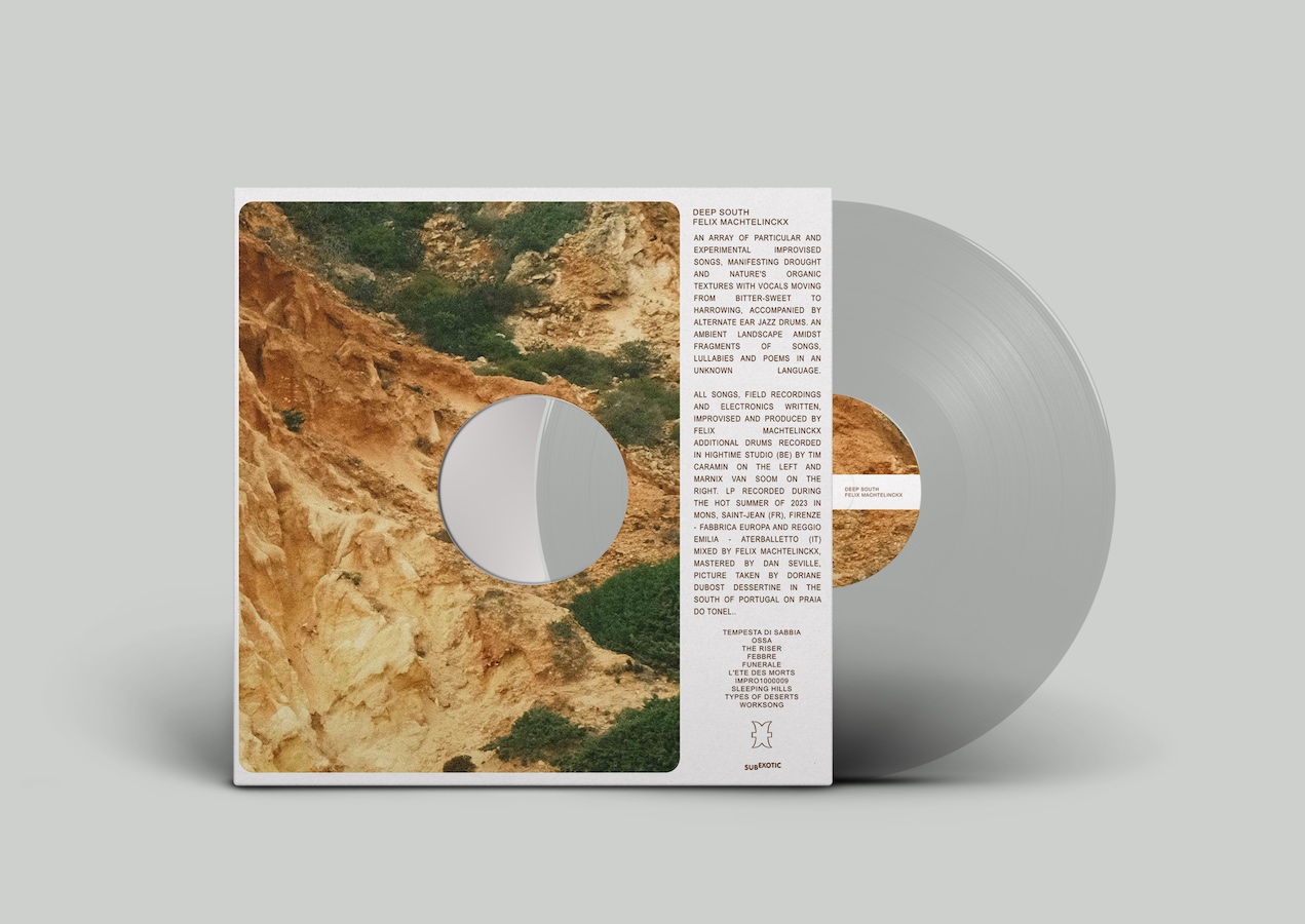 “I started the research for the album with one central theme: drought. The dry ground beneath my feet felt like a good place to start. I went out in nature with an old cassette field recorder in the South of France, in search of textures that moved me. Soon I started to improvise little songs, lullabies and poems in unknown languages accompanied by nature and its rich palette of sounds. Creating rhythms by hitting tree barks, scratching rocks and walking among the thyme and rosemary in the rocky mountains, coexisting with a threatening hot summer wind. These improvisations became the base of the tracks on Deep South. All of the roots of the songs were created from an improvised session in nature. From a to z. I never chopped or messed with the base tracks.